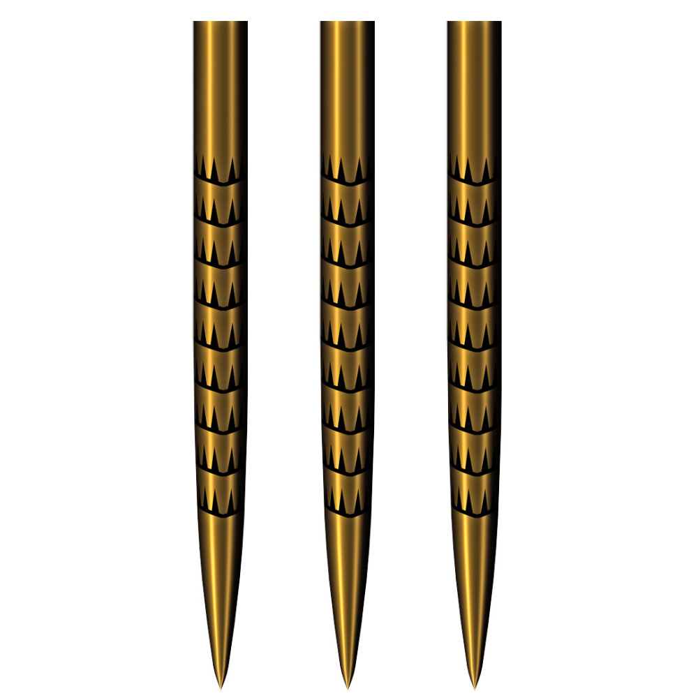 Coated in Gold Titanium for additional strength, the Badlands Range Tracks Steel Tip Dart Points feature a superfine cinder grip, precision-engraved at the Shot factory for maximum control and penetration into the dartboard. Rigorously tested for a smooth release, these points reduce dartboard wear while delivering consistent, pro-level performance. Available in four lengths, they let every player customise their setup for precision and grip that lasts.