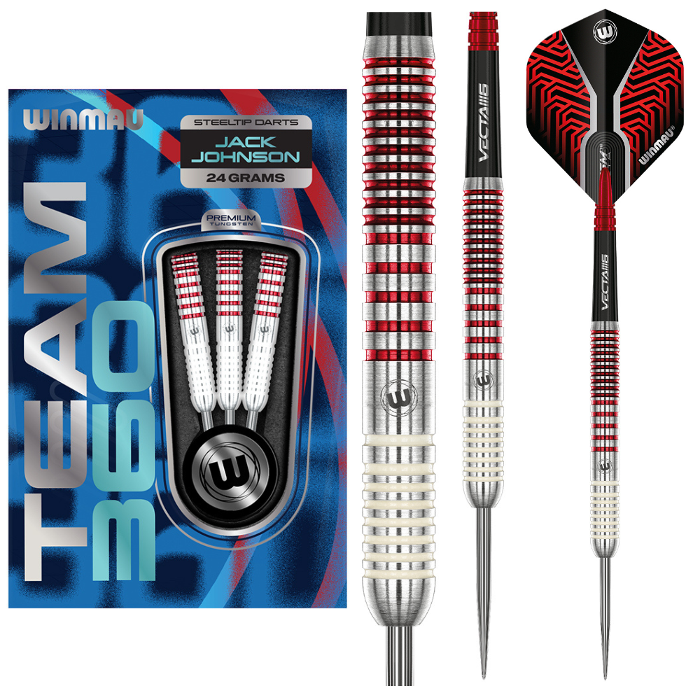 Jack Johnson’s meteoric rise through the darts ranks has been nothing short of sensational — and his signature 90% tungsten darts embody the same fearless precision that defines his game. Designed in collaboration with the Team 360 star, the barrel’s vibrant red-and-silver ring grip delivers a commanding feel, while the 49.39mm length and 6.4mm diameter provide a balanced, consistent throw.