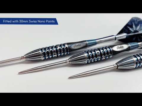 Equipped with 30mm Swiss nano points, the steel tips feature ultra-fine nano rings for extra board grip. The patented Swiss Point system enables players to change points in seconds using the included SP tool, with a taper and thread design that locks points firmly in place for reliable, high-performance play. Customise the darts and switch out the points to the included 35mm Swiss nano tips provided.