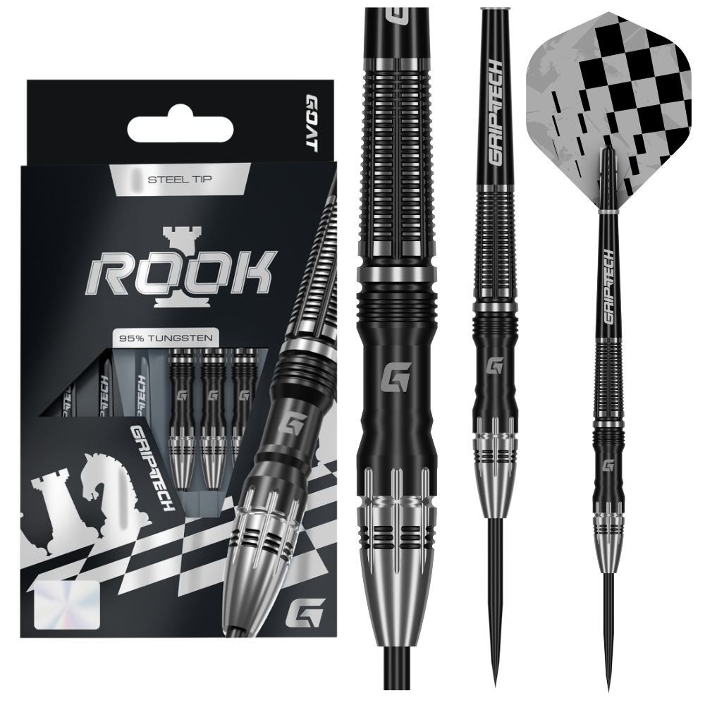 Control the Board with the GOAT Rook 95% Tungsten Darts. Powerful, Strategic and Unshakeable, forged for players who excel in their mental game, remaining consistently calm under-pressure. This barrel incorporates the Rook chess piece into its silhouette with a beautiful milled horizontal rear-grip.