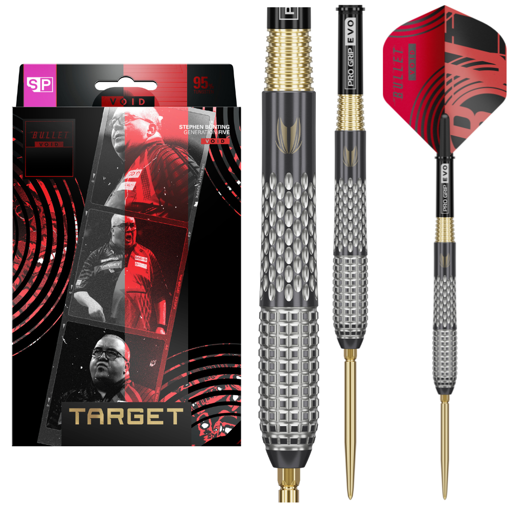 Crafted in collaboration with 2024 World Masters winner Stephen Bunting, the Bunting Generation 5 Void darts are engineered for precision, control, and consistency - reflecting the calm focus and relentless scoring power that have defined “The Bullet’s” success at the highest level of the game. Developed through extensive player testing and refinement, this latest generation blends elite performance engineering with a bold Void aesthetic inspired by Bunting’s unmistakable presence on the oche.